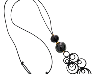 Χειροποίητο κολιέ με δέρμα επιχρυσωμένα στοιχεία και χάντρες από πορσελάνη